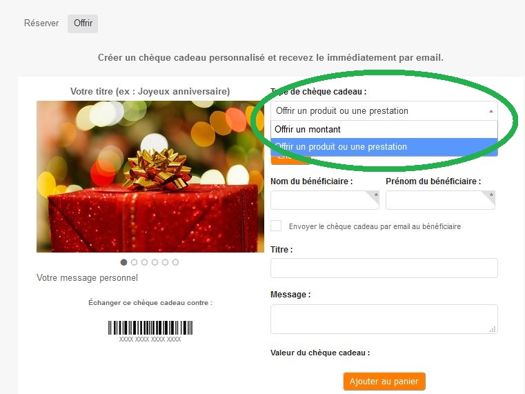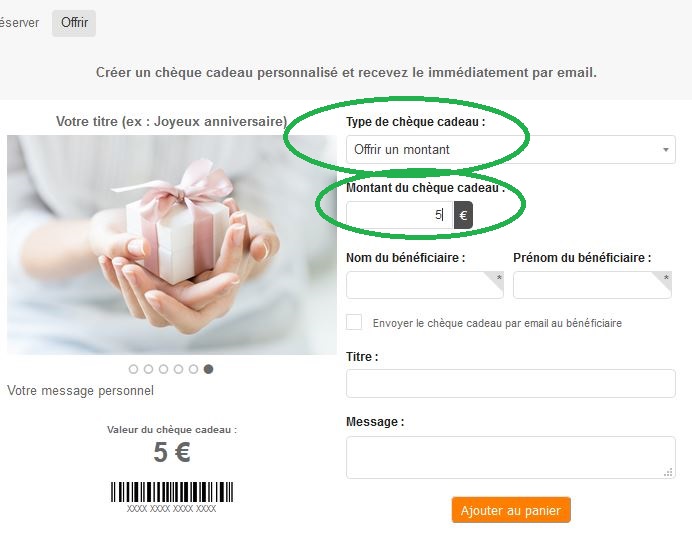 Puis, inscrivez le nom et prénom du receveur et ajoutez au panier ! L’échange est possible.