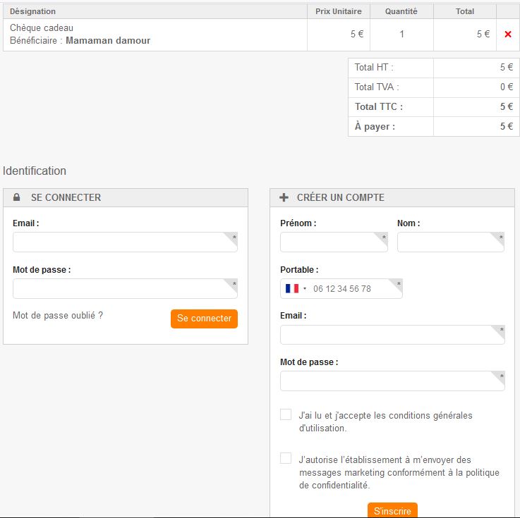 Une fois votre panier terminé, validez et connectez-vous ou entrez les informations nécessaires avant d’effectuer le paiement.