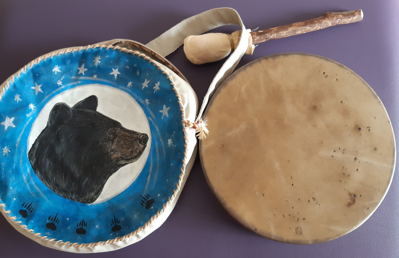 Quelques jours avant de le recevoir, j’ai reçu la vision d’un guide mi-loup mi-homme qui m’indiquait que j’avais en moi le don de jouer du tambour.