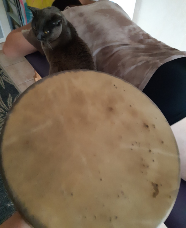 J’ai plusieurs chats à la maison et une était venue lors d’un soin druidique au son du tambour, soin sur la famille, je précise car mes chats ne sont pas libres de rentrer sinon. J’en ai profité pour lui faire un soin, elle en avait bien besoin.