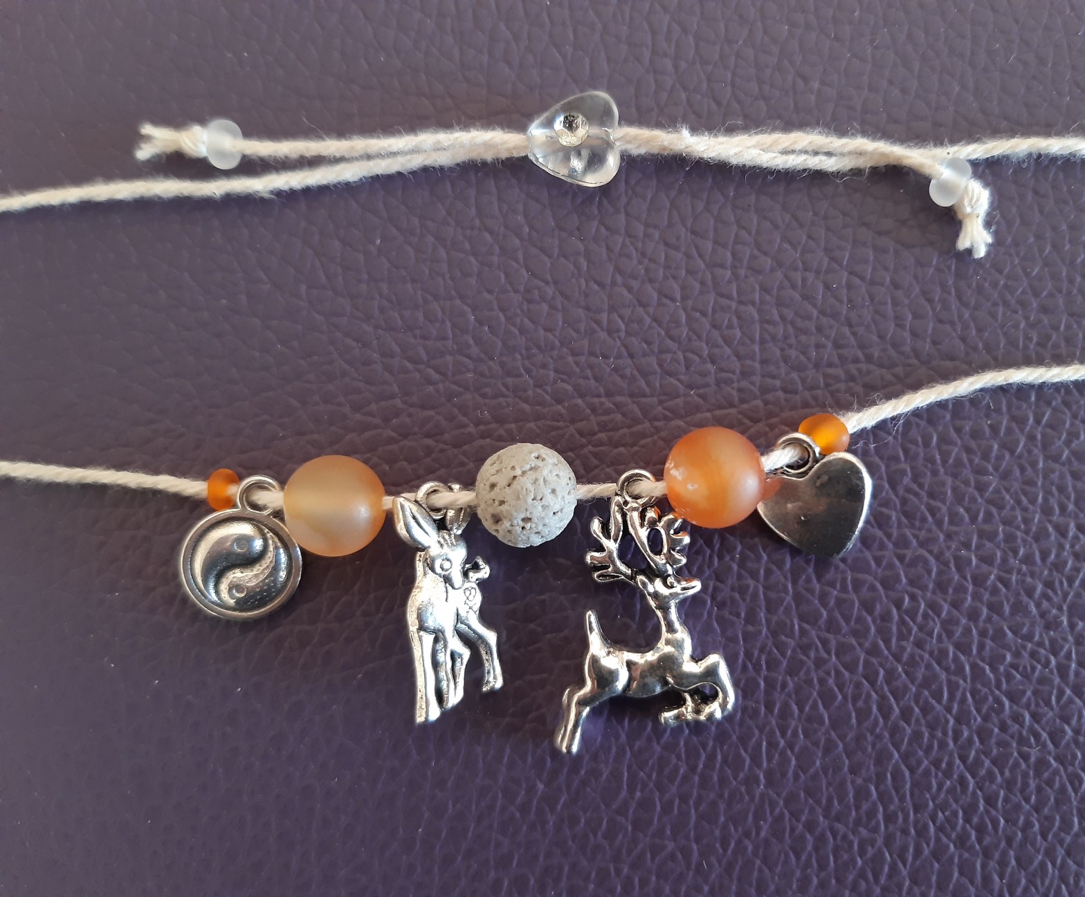 La création énergétique peut se trouver sous la forme de branche, de bracelet de cheville (chevillère), de bracelet, de collier, sur du bois, en accroche-sac ou autre.