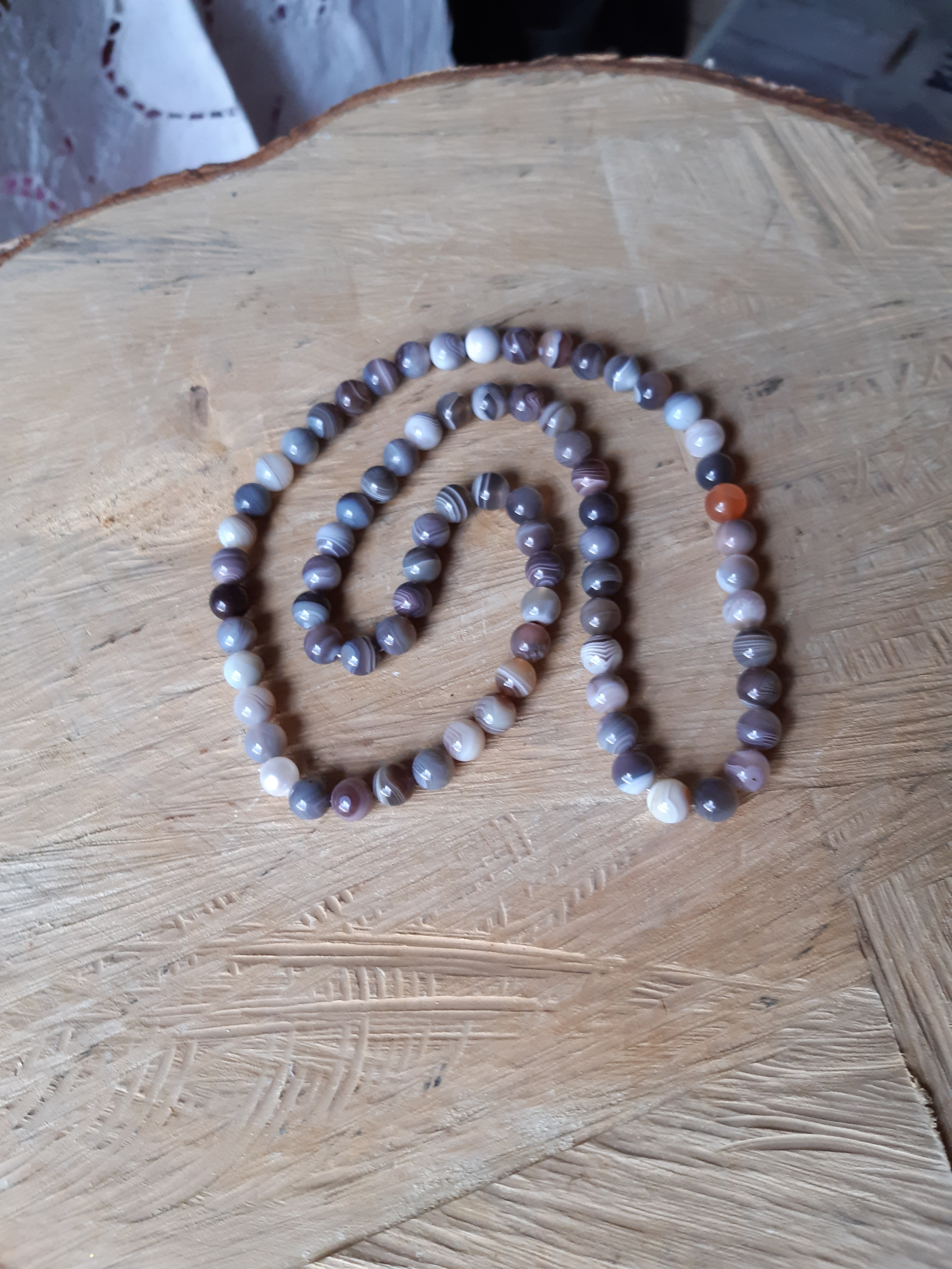 Création sur un fil épais ou plusieurs fils plus fins avec des perles de 8mm. La longueur varie en fonction de la demande.