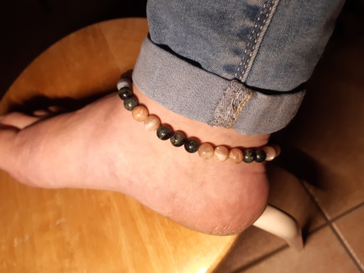 Si la chevillère est mouillée, bien l’essuyer. Ne pas la laisser au soleil, à la chaleur ou au froid. Si les pierres ternissent, massez les pierres délicatement avec un chiffon doux. Vous pouvez poser la chevillère régulièrement dans une coquille St Jacques, sur une fleur de vie ou tout autre symbole sacré.