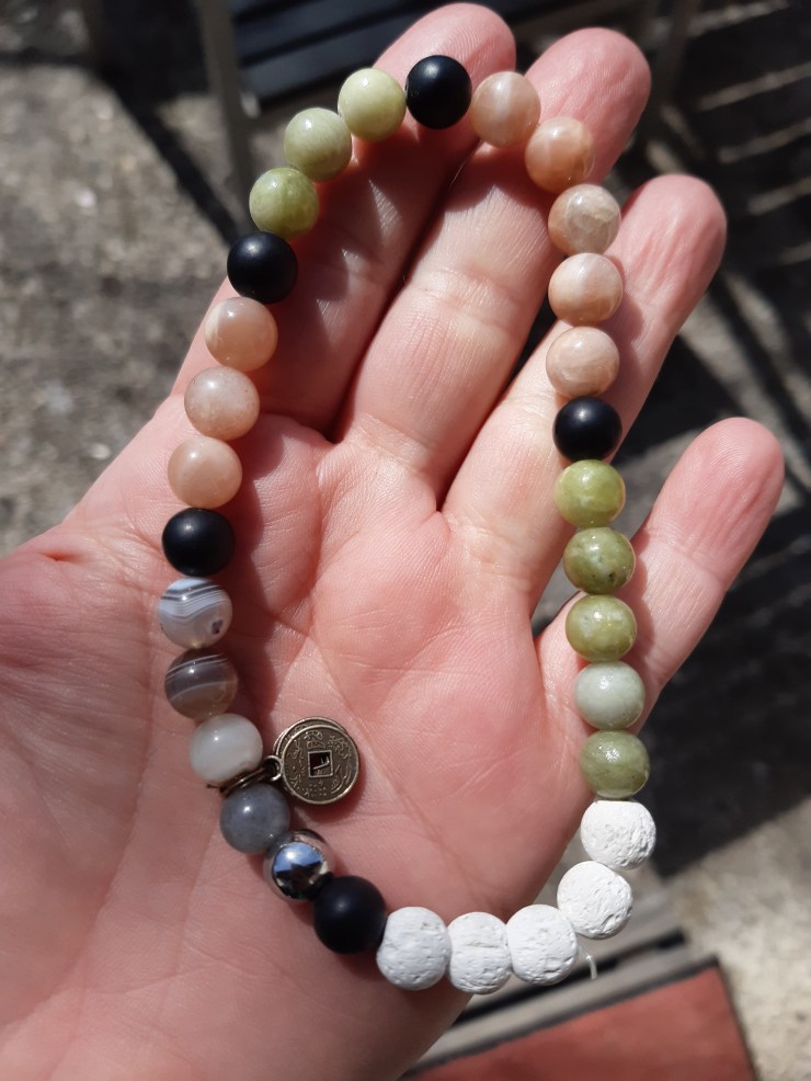 Création à la demande exclusivement, elles sont fabriquées avec des perles de 8mm et un ou deux fils élastiques.