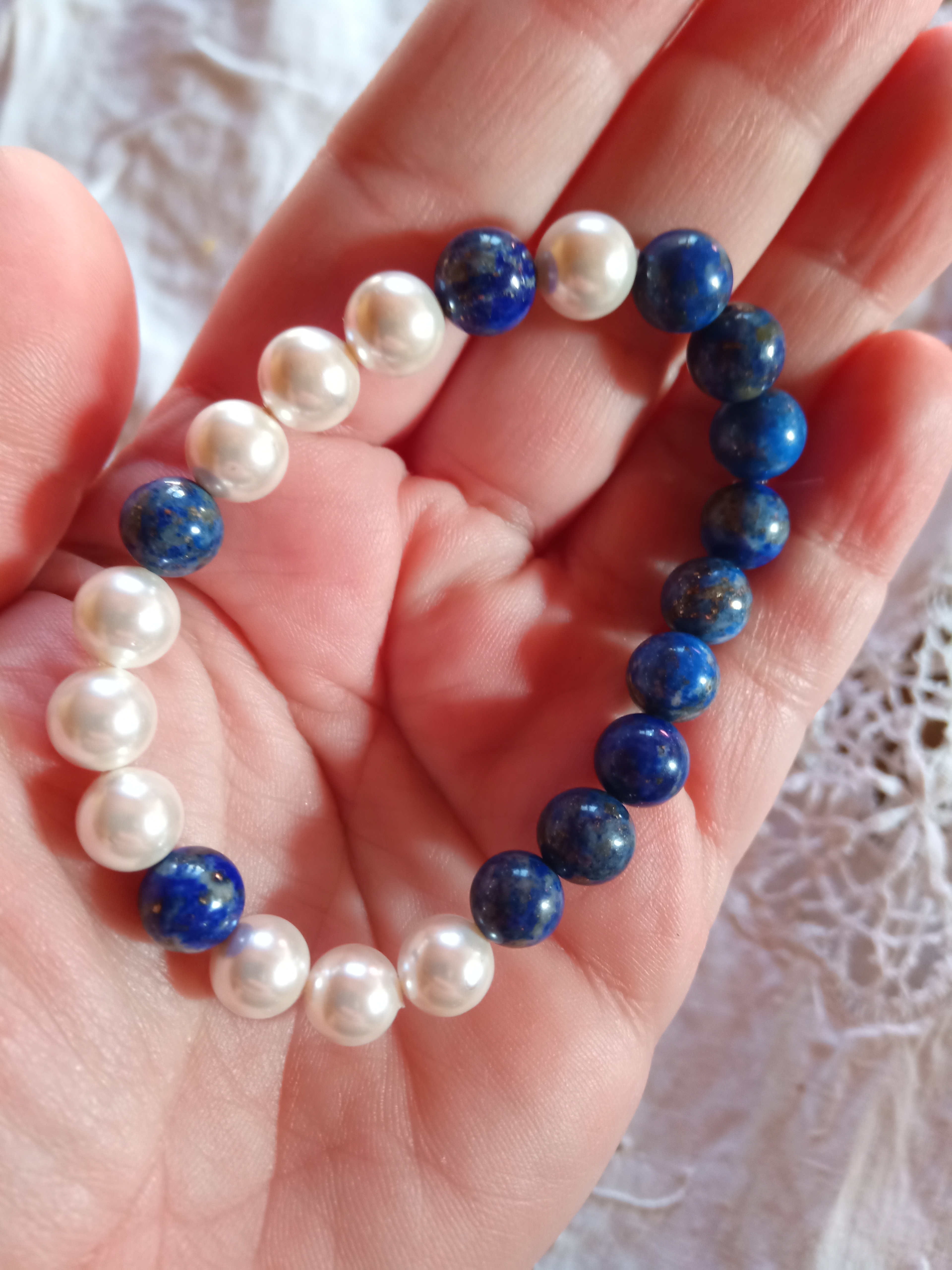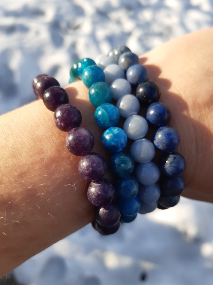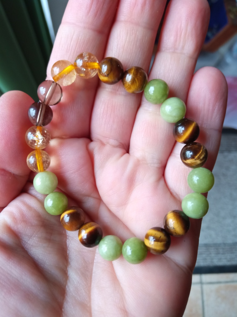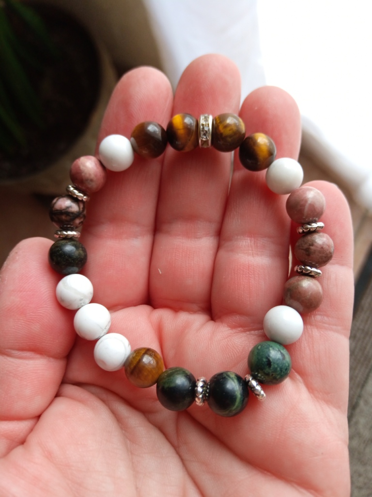 Quasiment tous les bracelets que j’ai créés sont fabriqués avec des perles de 8mm et un fil élastique, parfois doublé.