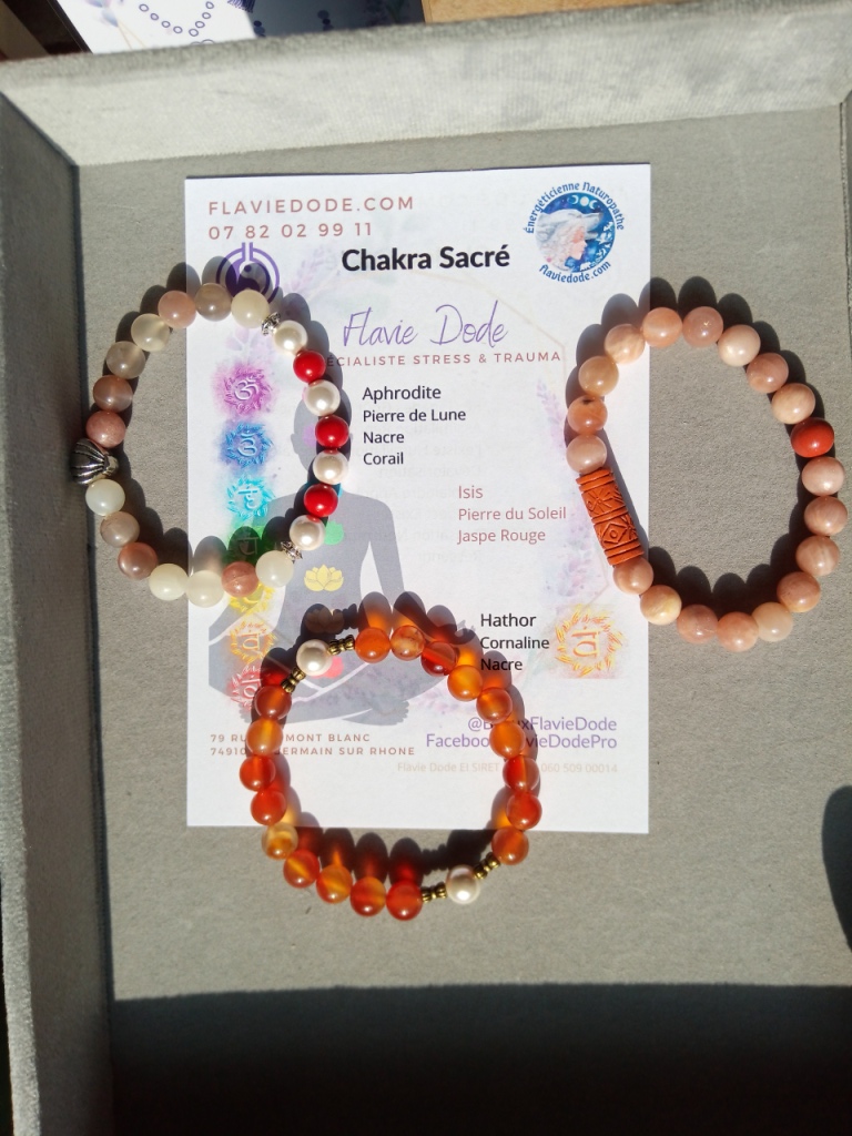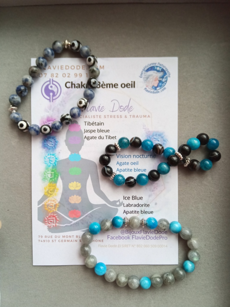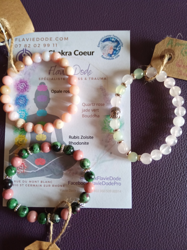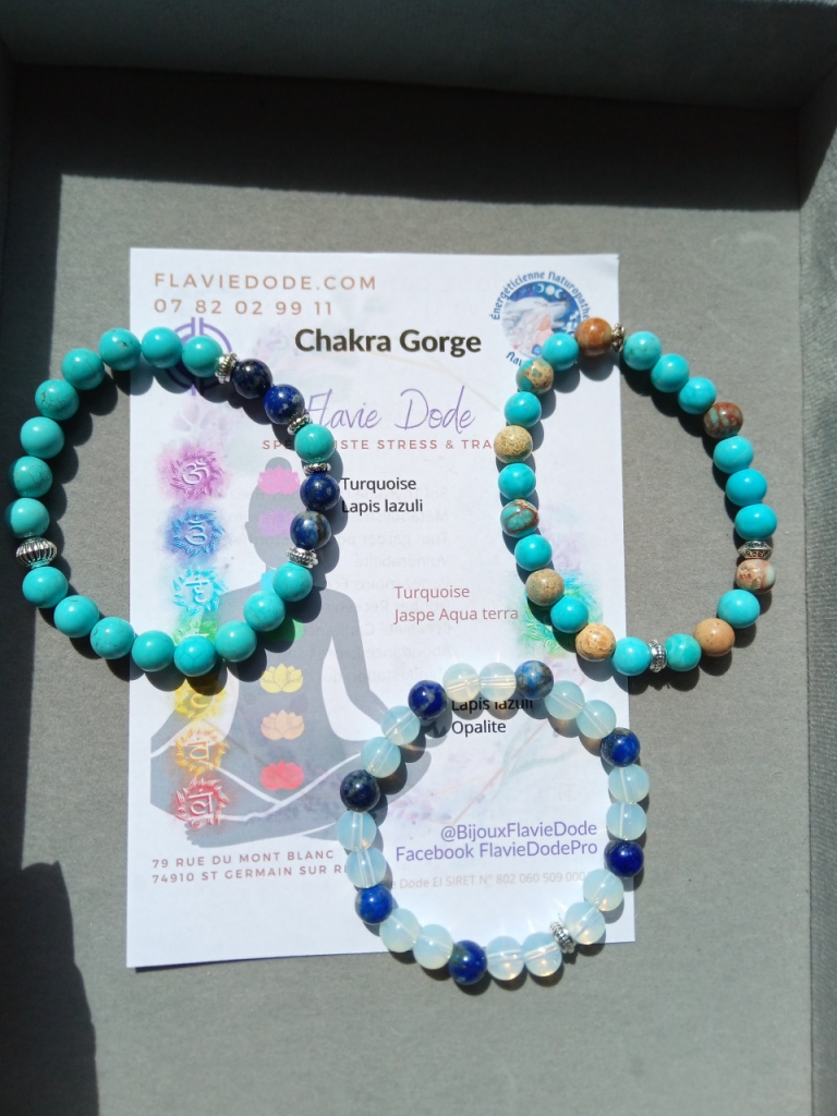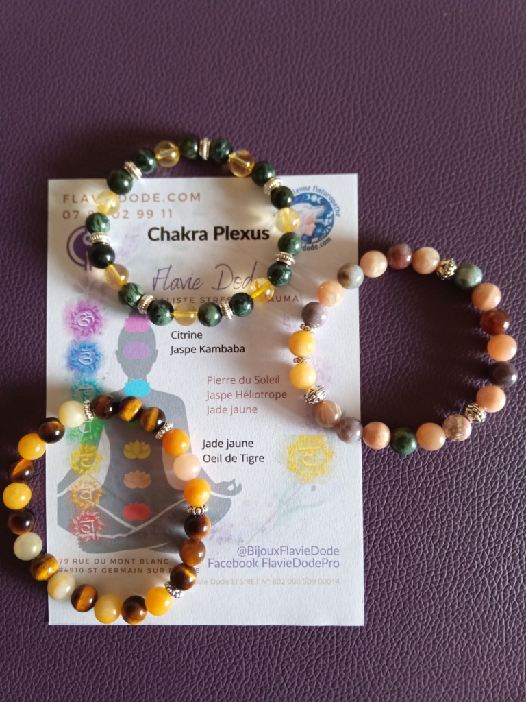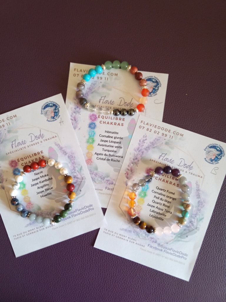 J’ai créé une série de bracelets Chakras, d’abord pour l’équilibre de tous les chakras puis par chakra. Pour les commander, ici.