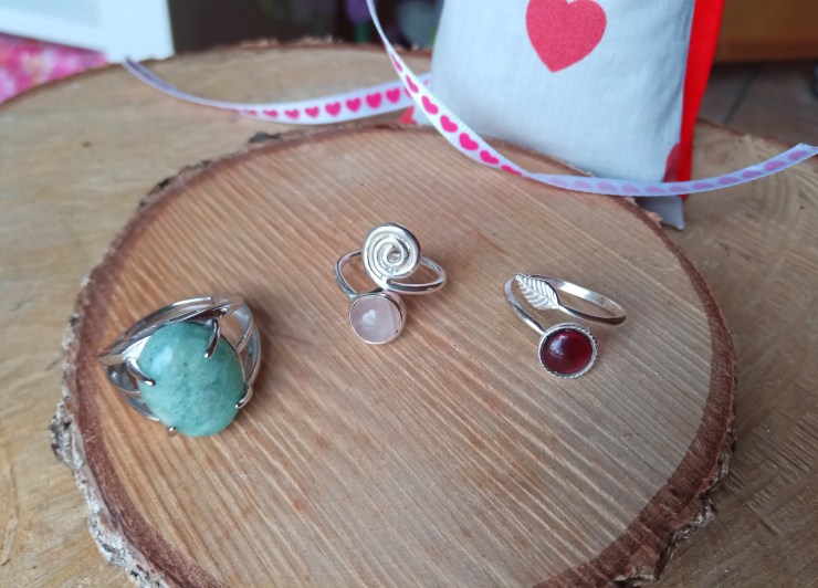 Des bijoux en argent : bagues réglables, pendentifs, bracelet